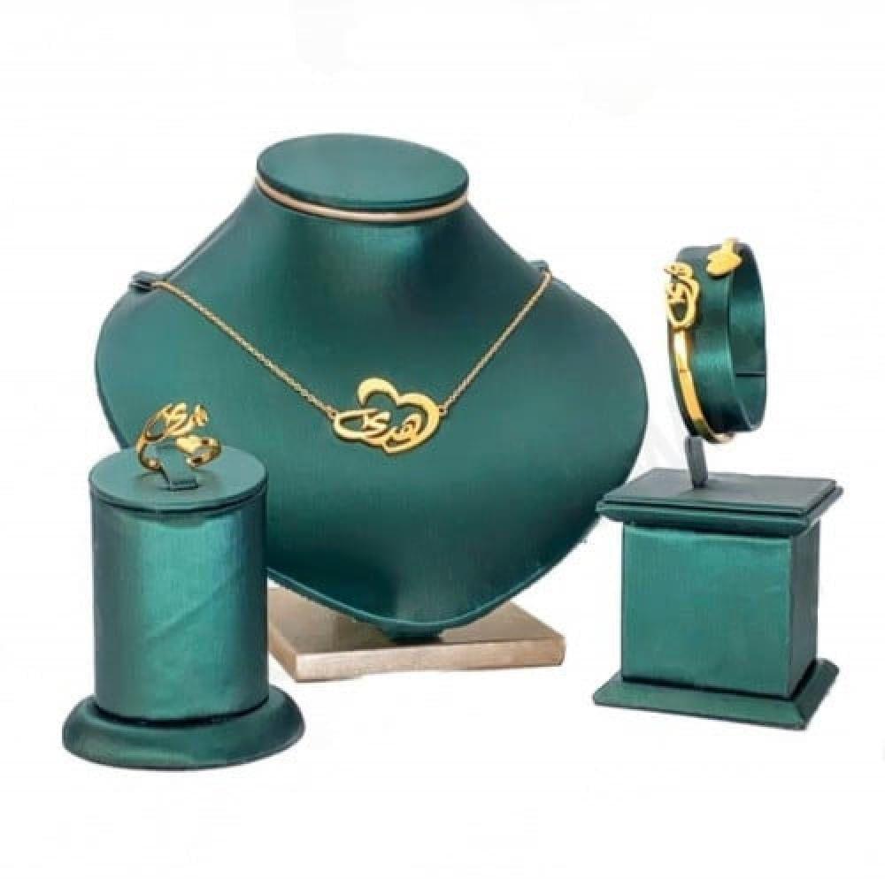 تميّز بإطلالة أنيقة مع مجموعة الإكسسوارات الفاخرة التي تضم أساور، سلسلة، وخاتم مخصص باسمك، مطلية بالذهب لتمنحك لمسة فخامة خاصة تعبر عن ذوقك الرفيع. تصميم يجمع بين البساطة والفخامة، مثالي للإهداء أو الاستخدام الشخصي.